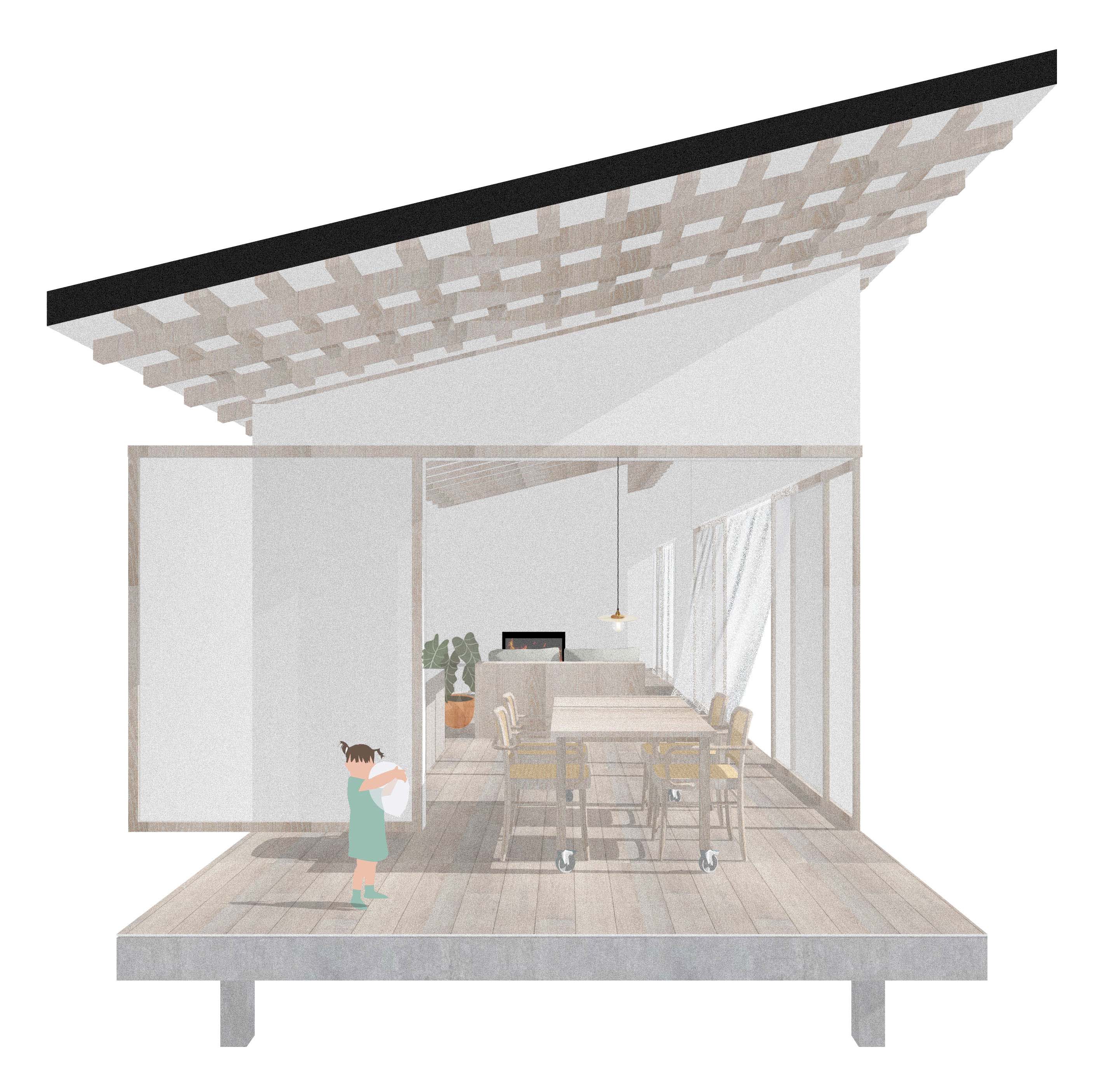 Nature is the core of Garden House, with practical functions scatterd around. All programs are connected through a rectangular lifted platform, which extends to the semi-outdoor area blurring the boundary of inside-outside.